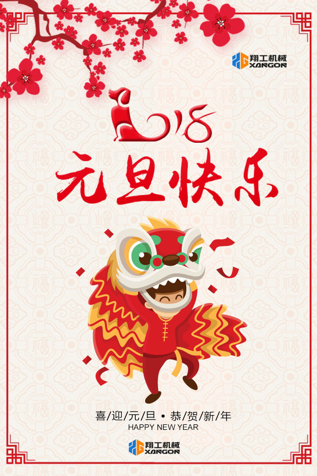 在此,山東翔工機械祝您元旦快樂(lè ),闔家幸福!愿您狗年大吉大利,萬(wàn)事如意!2018!我們攜手并進(jìn),共贏(yíng)狗年!再創(chuàng )新輝煌