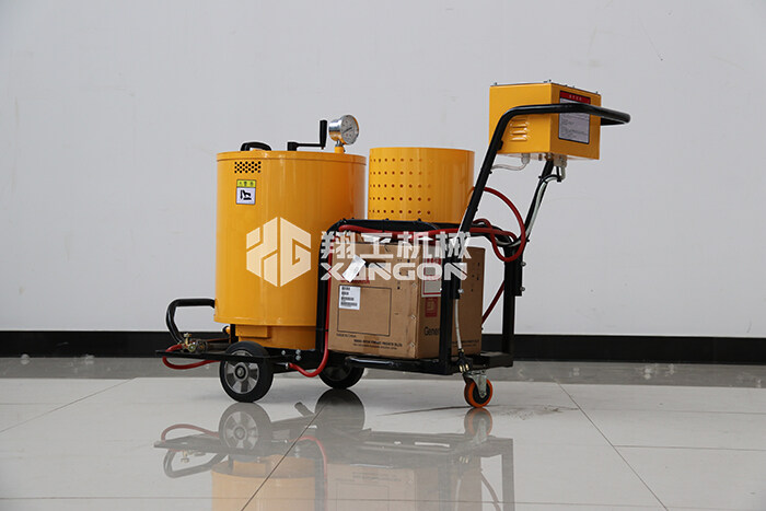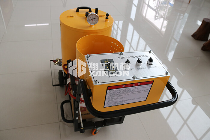 翔工60L手扶瀝青灌縫機采用液化氣加熱系統,導熱油循環(huán),使瀝青或灌縫膠快速融化,通過(guò)瀝青泵的壓力由出料口出料而達到裂縫處理的效果。通過(guò)壓力注射式灌縫,使材料和縫壁緊密結合,轉向靈活的萬(wàn)向輪追蹤裂縫,使灌縫效果美觀(guān)。由于灌縫材料使用瀝青或灌縫膠,在溫度較低時(shí)容易凝固,灌縫機配有發(fā)電機組提供整機動(dòng)力,灌縫機在出料管部位采用恒溫控制系統,避免材料燒焦老化,保證出料的順暢。