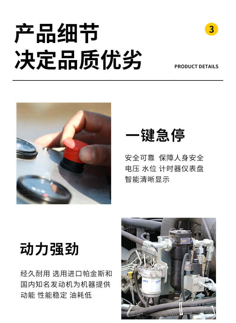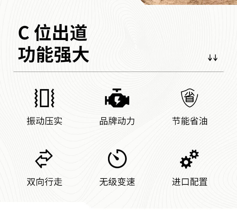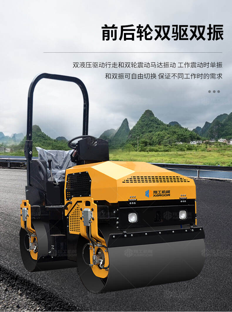 采用進(jìn)口液壓系統,雙驅雙振,前后輪可單獨調節振動(dòng),亦可同時(shí)振動(dòng)。液壓轉向,液壓驅動(dòng),液壓行走,液壓振動(dòng)。進(jìn)口英國鉑金斯柴油機三缸水冷四沖程,動(dòng)力強勁,性能穩定。超快速度一小時(shí)可達12千米,無(wú)極變速。壓土,碎石,壓瀝青,壓回填土效果超乎想象。