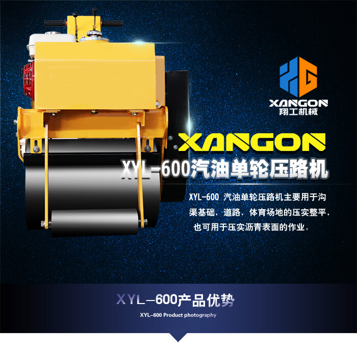XYL-600 汽油單輪壓路機主要用于溝渠基礎,道路,體育場(chǎng)地的壓實(shí)整平, 也可用于壓實(shí)瀝青表面的作業(yè)。