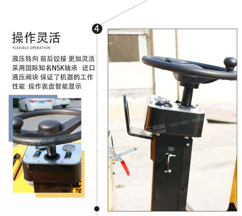·發(fā)動(dòng)機電啟動(dòng),機器采用液壓振動(dòng),操作更加輕松方便;
