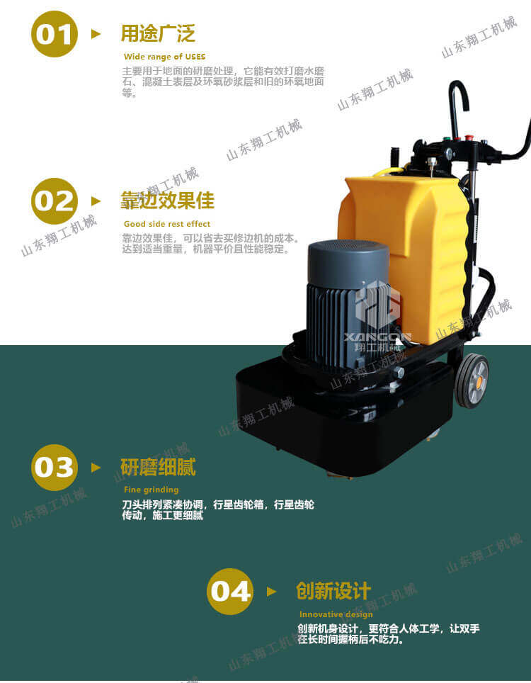 地坪研磨機主要用于地面的研磨處理,它能很好的打磨水磨石、混凝土表層及環(huán)氧砂漿層和舊的環(huán)氧地面等。具有輕便、靈活,工作效率高等特點(diǎn)。是做地坪工程處理的理想設備。