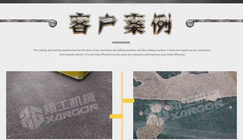 鑿毛銑刨一體機同時(shí)具備了銑刨機和鑿毛機這兩個(gè)機器設備的功能,不需要空壓機,純電動(dòng),不但效率高而且為您節省費用,提高工作效率!鑿毛銑刨一體機可以用于高速公路、高鐵、橋面及箱梁混凝土層剔鑿,建筑物地面及市政工程混凝土表面鑿毛、修補、翻新、二次加固。室內地面做高了也可以用它銑去高出部分,以及大理石花崗巖的防滑鑿毛處理等多種用途,本機易于操作,工作效率很高等特點(diǎn)深受?chē)鴥韧庥脩?hù)青睞!