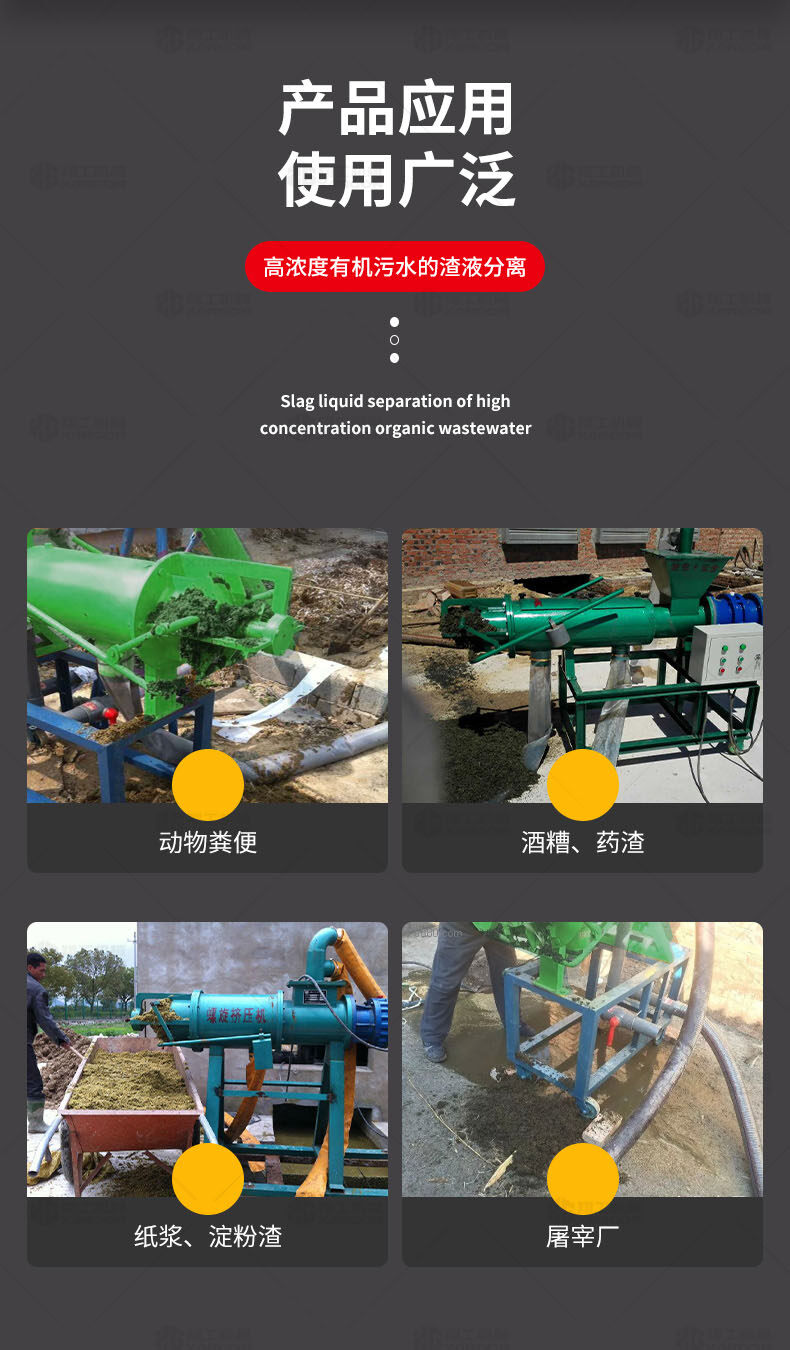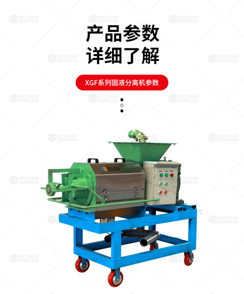 XGF系列固液分離機可廣泛做為雞、牛,馬及各類(lèi)集約化養殖場(chǎng)對紙漿、動(dòng)物糞便、酒糟、藥渣、淀粉渣、醬渣、屠宰廠(chǎng)等高濃度有機污水的渣液分離。