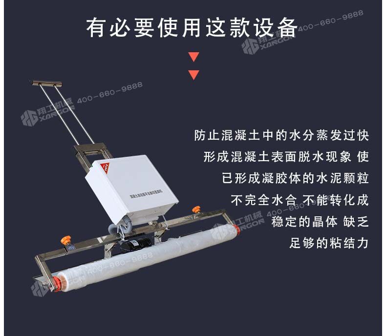 混凝土澆注后,如果養護不及時(shí)就容易產(chǎn)生一些不良效果,如氣候炎熱、空氣干燥等情況,我們就有必要使用這款設備,防止混凝土中的水分蒸發(fā)過(guò)快,形成混凝土表面脫水現象,使已形成凝膠體的水泥顆粒不完全水合,不能轉化成穩定的晶體,缺乏足夠的粘結力。因此,混凝土表面會(huì )出現剝落或粉粒脫落。另外,當混凝土強度不夠時(shí),過(guò)早蒸發(fā)水分會(huì )產(chǎn)生較大的收縮變形和干縮裂縫。因此,混凝土澆筑后的初期養護非常重要,終凝后應立即進(jìn)行養護。