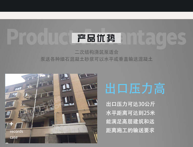 此設備是針對二次構造專(zhuān)門(mén)研發(fā)的細石混凝土輸送設備,體積小,重量輕,移動(dòng)方便,是狹窄施工環(huán)境的選擇;能夠保證我們合理施工,大大減輕了我們的工作量。