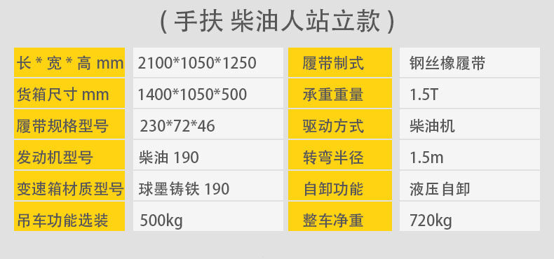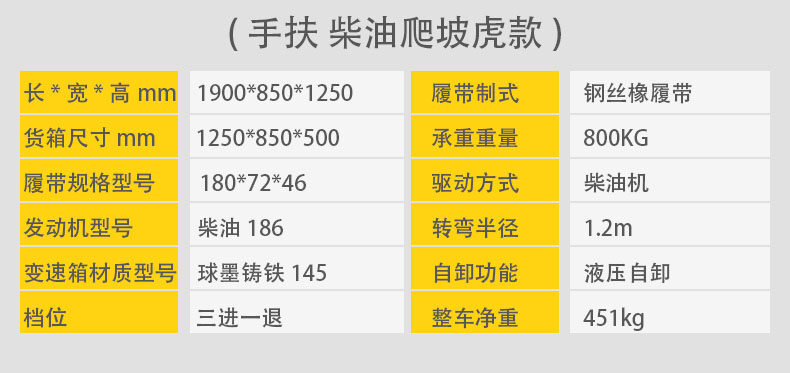 手扶式履帶運輸車(chē)它是采用手扶式的方式駕駛,自動(dòng)靈活,安全可靠,可以在泥濘、結冰道路、沙漠、沼澤以及土質(zhì)松軟或氣候條件不太好的接近角和離地角行駛。它的性能穩定,功能強勁,使用能力進(jìn)一步提高。運載能力強,爬坡能力大,操作簡(jiǎn)單,維修保養容易。