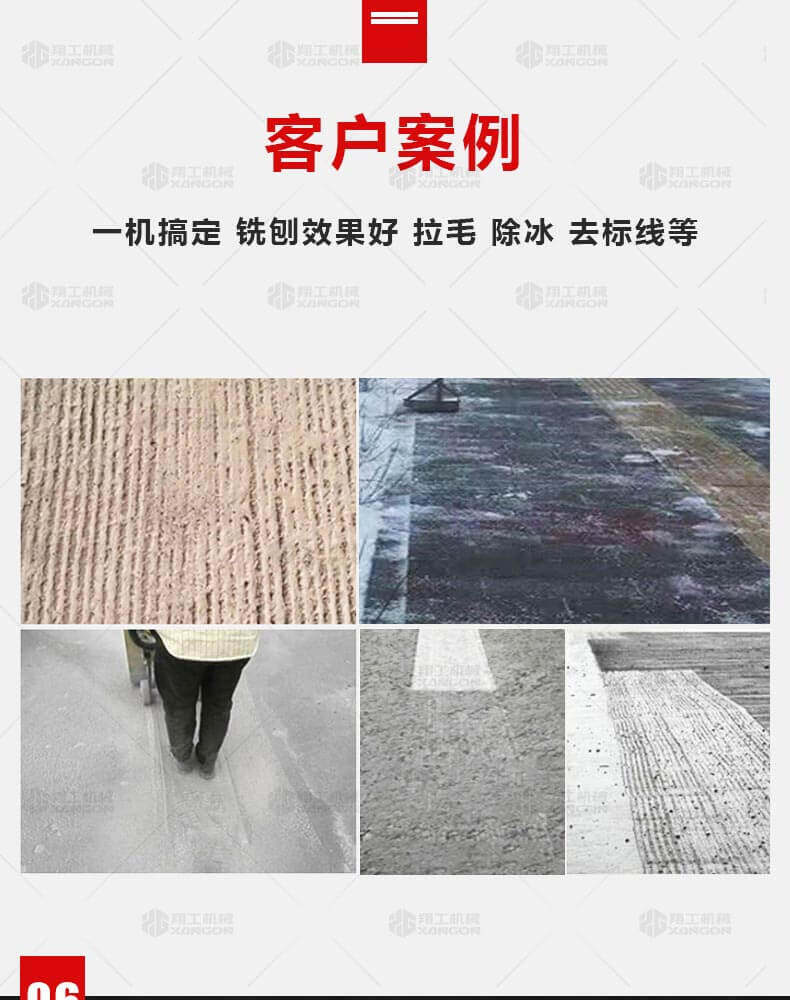 用于橋面鋪設瀝青或車(chē)間舊的混凝土地面重新攤鋪混凝土之前,清理水泥浮漿以及鏟平拉毛,也用于清理建筑施工中堅硬灰渣。