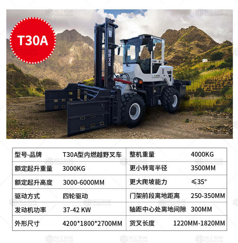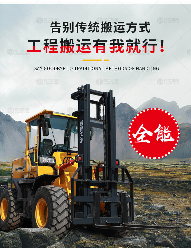 越野叉車(chē)可以在坡地和不平地面上進(jìn)行貨物裝、卸、堆垛及搬運作業(yè),具有良好的機動(dòng)性、越野性可靠性。其功能多樣,可搭配側移器、調距叉、旋轉器、軟包夾、推出器、側翻叉、側翻斗、起重臂等工具完成不同的工作。
