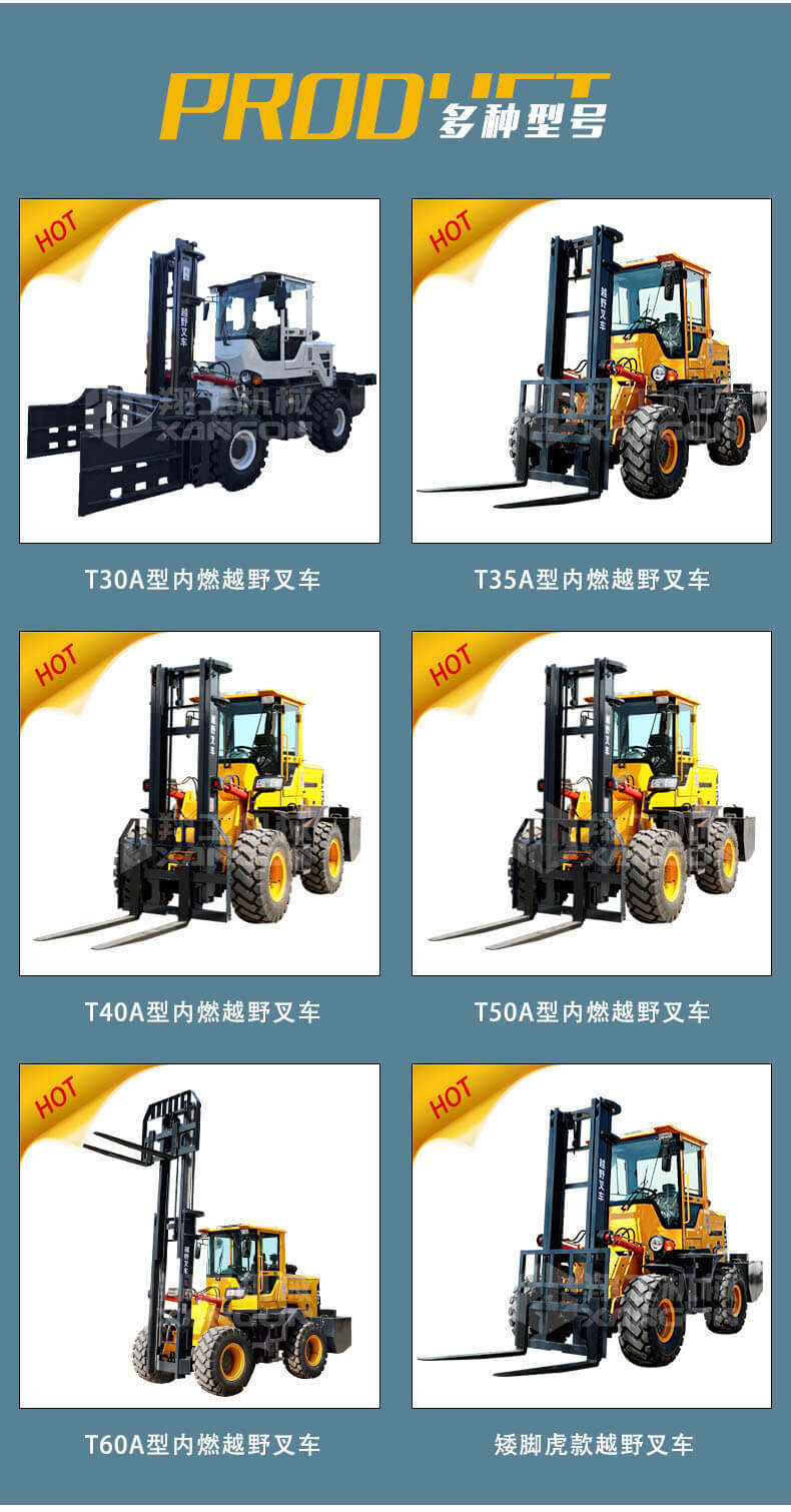 3.普通叉車(chē)只能在平整的路面上作業(yè),而越野叉車(chē)既可以在普通路面上作業(yè),還可以在山路泥路崎嶇道路作業(yè),輪胎抓地力強,不打滑。