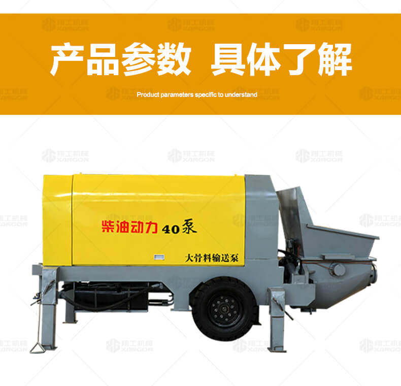 大骨料混凝土輸送泵主要用于坡道灌漿、水平地面、隧道澆筑。模板灌漿等。移動(dòng)便捷全部采用快接式管道卡,提高工作效率 。