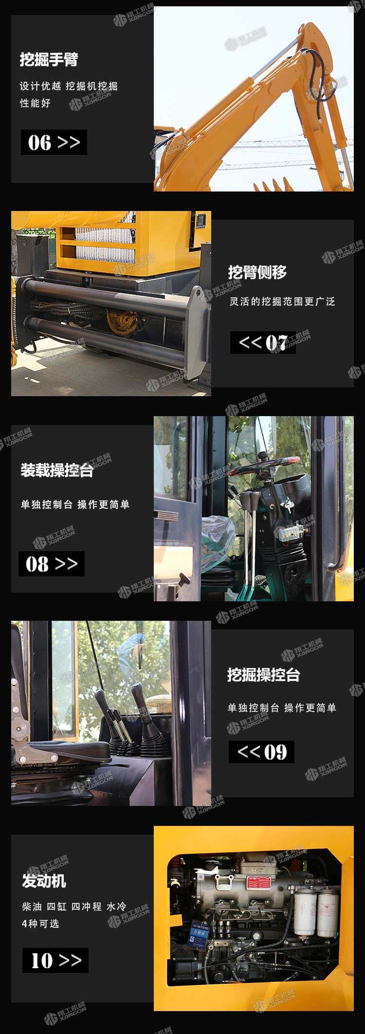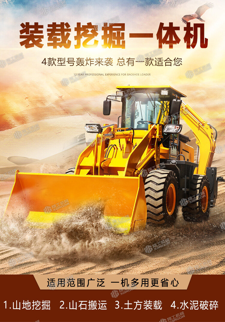 挖掘裝載一體機俗稱(chēng)“兩頭忙”。因為它具有獨特的構造,前端是裝載裝置,后端為挖掘裝置。在工地內,您只需要轉動(dòng)一下座椅,即可完成從裝載機到挖掘機操作手角色的轉變?!皟深^忙”屬于小型多功能工程機械的一種,一般在大工程完成后的小工程中使用。它可配多種工作裝置及輔具,進(jìn)行挖掘、鏟裝、路面破碎、平整場(chǎng)地、開(kāi)挖溝渠、鋪設管道等多種作業(yè)。