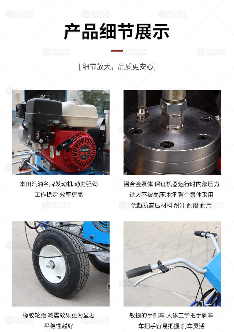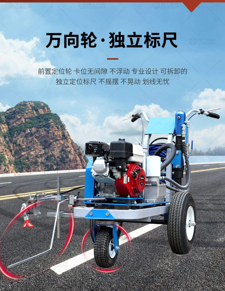 道路劃線(xiàn)機有冷噴式和熱熔式兩大類(lèi),冷噴式操作方便,施工快捷,可連續快速施工,越來(lái)越受到用戶(hù)青睞。熱熔式要帶上熱熔高溫爐等諸多輔助設施,施工時(shí)要間歇地從熱熔高溫爐取料,施工速度很慢,操作便捷性不夠且效率低,但一次成膜較厚。目前,比較常用的是冷噴手推式劃線(xiàn)機,它可運用于一般公路中小工程,運用于廠(chǎng)區或地下室小工程劃線(xiàn)施工。