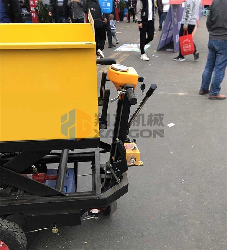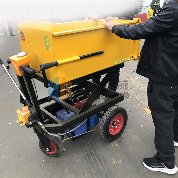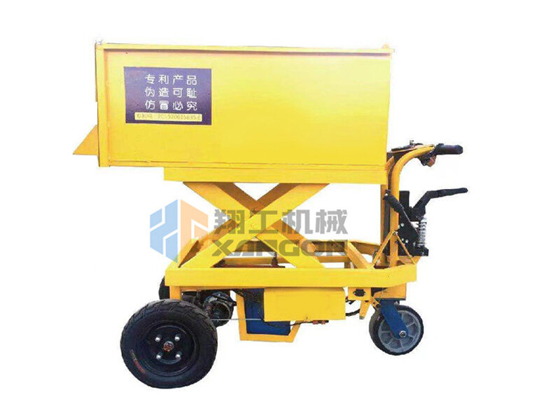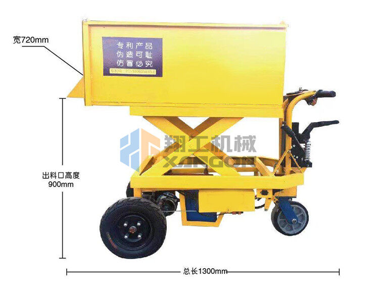 升降式混凝土小推車(chē)其主要特點(diǎn)是料斗升降式、尾后出料口和電動(dòng)行走。