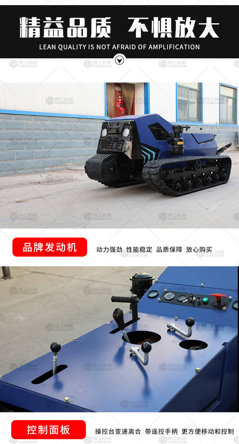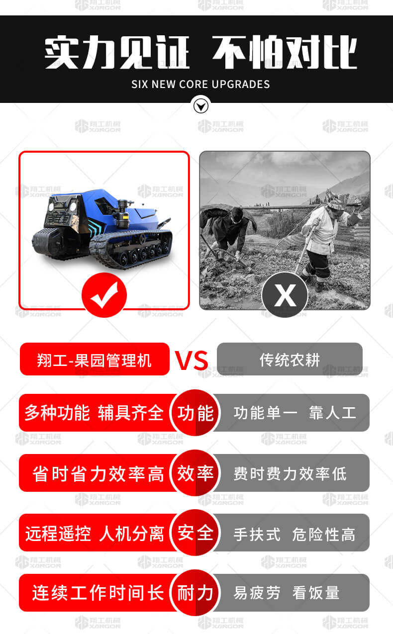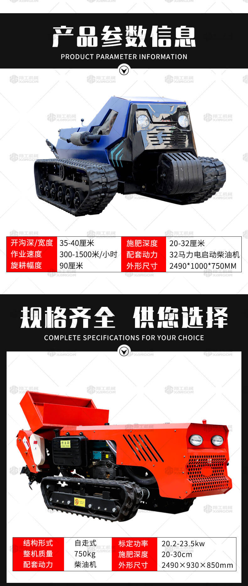 本產(chǎn)品采用履帶式驅動(dòng)設計,穩定性和爬坡能力較強,適應丘陵山地平原各種地形,機型小功率大,適應各種行距的果樹(shù),大棚,園林。產(chǎn)品動(dòng)力強勁,結實(shí)耐用,性能優(yōu)越,安全放心,遠程操控,省心省力。