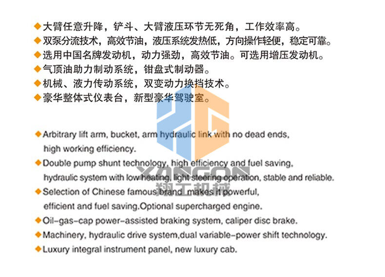 主要用于鏟裝土壤、砂石、石灰、煤炭等散狀物料,也可對礦石、硬土等作輕度鏟挖作業(yè)。換裝不同的輔助工作裝置還可進(jìn)行推土、起重和其他物料如木材的裝卸作業(yè)。在道路、特別是在高等級公路施工中,裝載機用于路基工程的填挖、瀝青混合料和水泥混凝土料場(chǎng)的集料與裝料等作業(yè)。